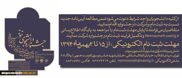 آیین نامه جشنواره دانشجوی نمونه