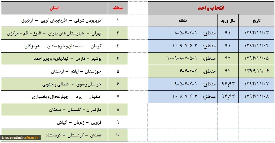 زمان بندی انتخاب واحد نیمسال دوم 95-94