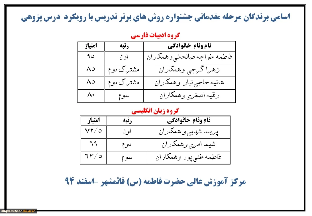 برترینهای جشنواره تدریس برتر مرحله مقدماتی