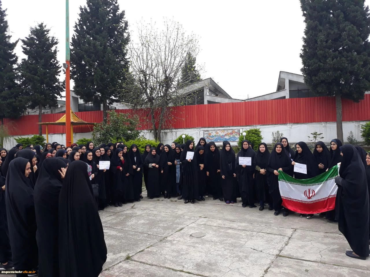 تجمع اعتراض آمیز دانشجویان ،اساتید و کارکنان مرکز حضرت فاطمه (س)قائمشهر در پاسخ به اقدام وقیحانه دولت آمریکا در قرار دادن سپاه پاسداران در لیست گروه های تروریستی