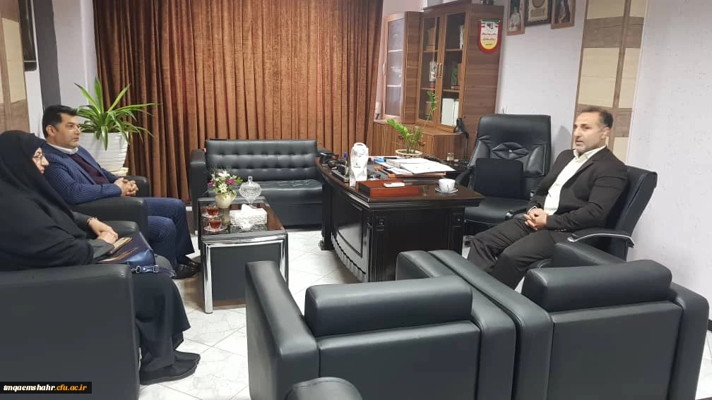 جلسه مشترک اقای میرزایی یکی از اعضای شورای شهر ،اقای قدمی رییس اداره تربیت بدنی و خانم دکتر دابوئی رییس مرکز اموزش عالی حضرت فاطمه (س) قائم شهر برگزار شد . 2