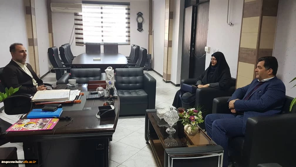 جلسه مشترک اقای میرزایی یکی از اعضای شورای شهر ،اقای قدمی رییس اداره تربیت بدنی و خانم دکتر دابوئی رییس مرکز اموزش عالی حضرت فاطمه (س) قائم شهر برگزار شد . 2