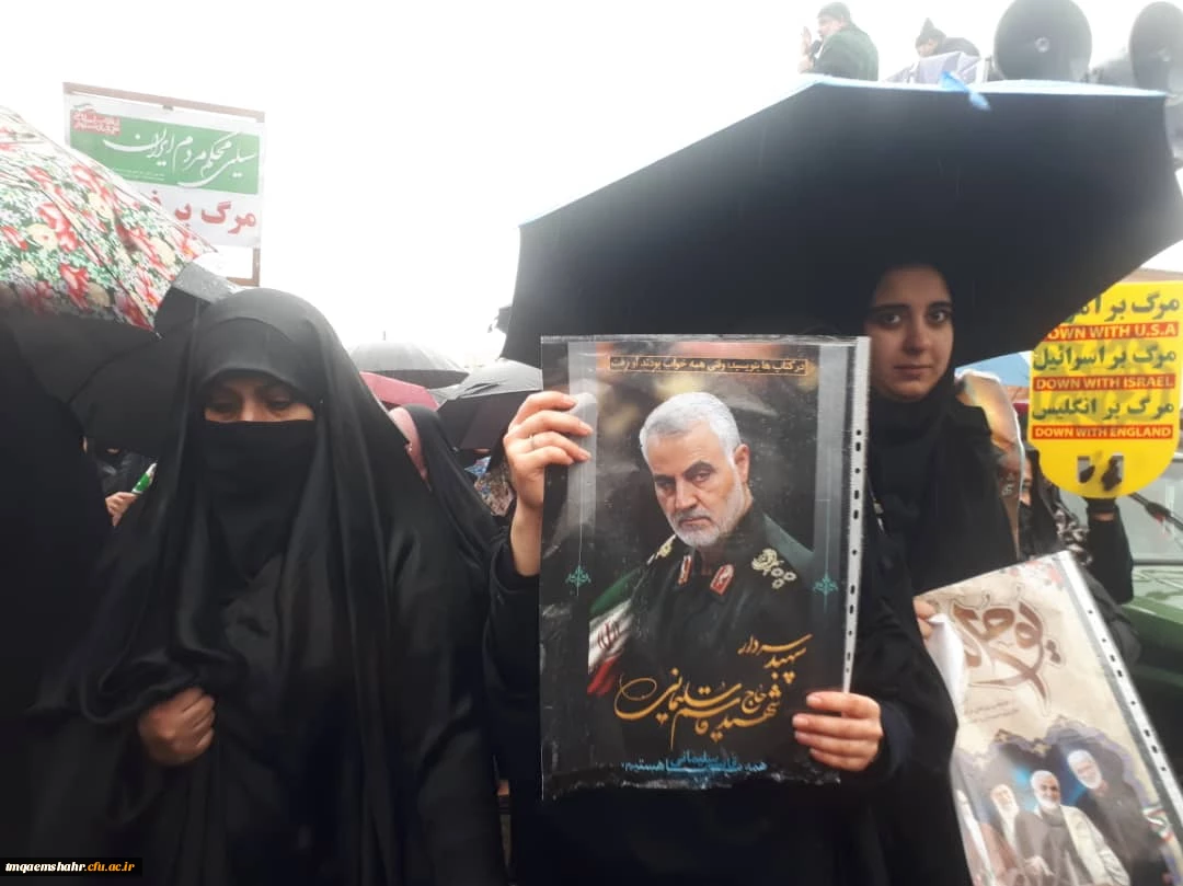 دانشجو معلمان مرکز اموزش عالی حضرت فاطمه (س ) قائم شهر همزمان با سایر هموطنان در راهپیمائی باشکوه 22 بهمن حضور پیدا کرده و با ارمان های مقدس امام خمینی (ره ) و رهبر معظم انقلاب تجدید میثاق نمودند .  2