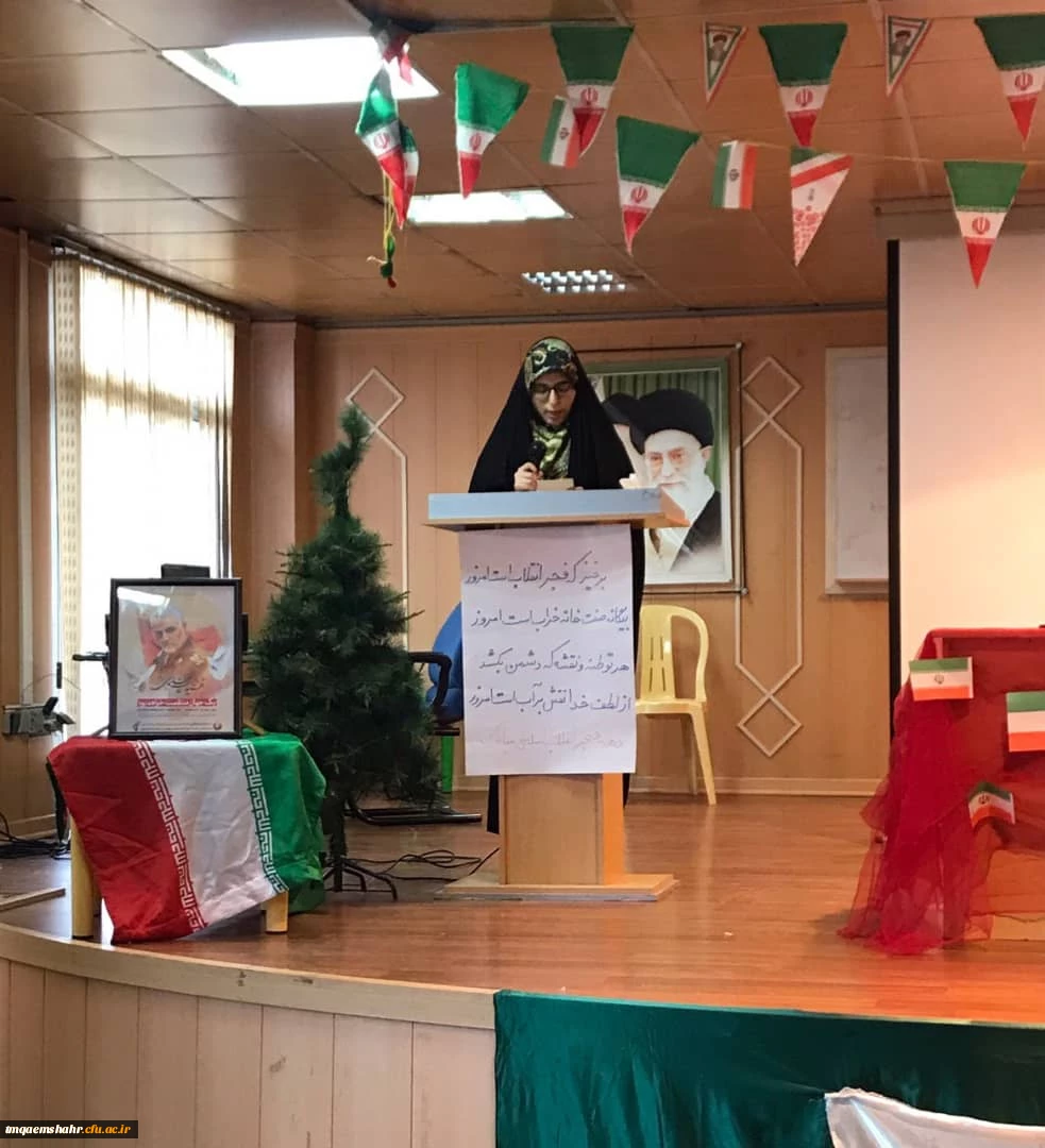 ویژه برنامه دهه فجر ،جشن پیروزی انقلاب و گرامیداشت چهلمین روز شهادت سردار سلیمانی در مرکز اموزش عالی حضرت فاطمه (س) قائم شهر برگزار شد. 2